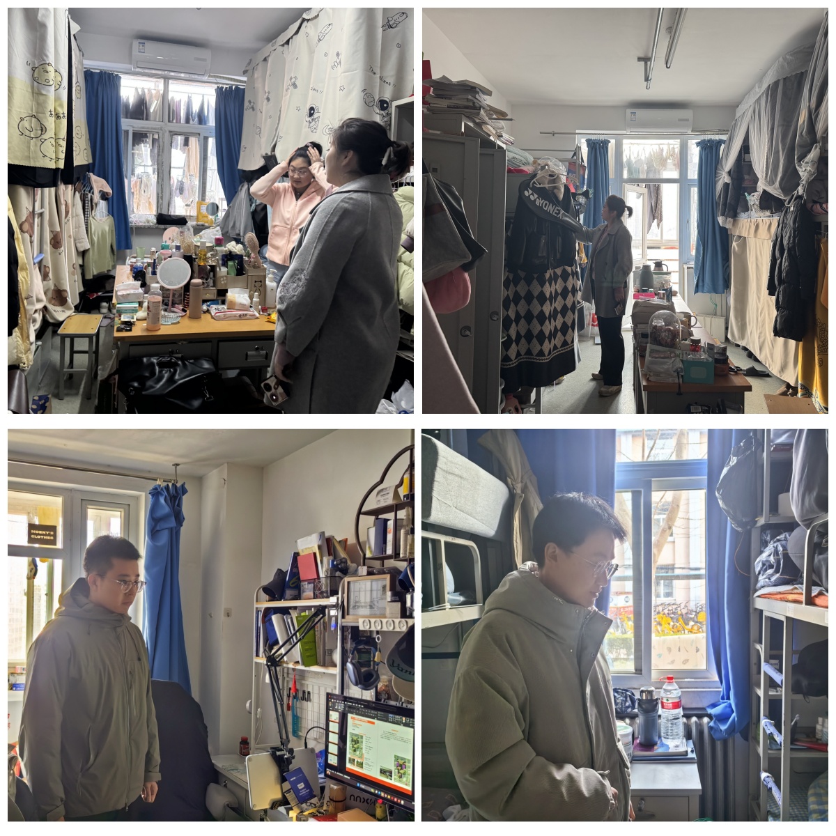 3月5日,员工工作组对19号楼、嘉园B座、15号楼、18号楼、2号楼,东区2号楼,学苑公寓全体本科生、研究生宿舍进行全面检查。此次检查重点聚焦宿舍防火和用电安全,叮嘱员工严格遵守宿舍管理规定,绷紧安全弦,做到“人走电断”,提高安全防范意识。老师们与同学们亲切交流,针对毕业生关注其就业进展与未来规划,针对其他年级员工,关心其新学期生活,鼓励大家做好时间规划,以饱满的精神面貌迎接新学期。