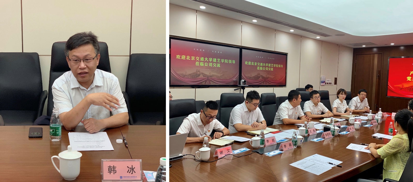 韩冰从公司专业及学科发展,科研项目等方面进行系统的介绍,他表示公司近年来积极响应国家号召,在城市更新,绿建、乡村建设等研究和实践领域均取得丰硕成果。希望双方以产学研合作和党建共建为基础,密切联系,不断加深人才培养及业务领域合作。姜威详细介绍了公司主营业务板块、“1+2+3”人才培养模式、校园招聘等情况,希望双方共同打造“党建促共建,共建促合作,合作促发展”的合作模式。与会人员就党团工作模式创新,双方人才培养,员工实习就业等方面进行交流探讨。