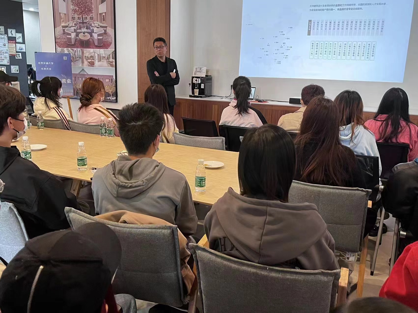 北京天华总经理闫锋对公司师生的来访表示热烈欢迎,并对天华的建立、研究方向、营业范围、设计优秀案例、就业待遇等几个主要方面进行了详细的介绍,副总建筑师蔡俊结合天华实战案例,介绍了近年来的热点话题——康养类建筑设计、室内外设计,以及软装设计,同时详细讲解了近几年天华优秀医养项目的设计理念与成效反馈,并对医养项目设计市场的未来与发展提出分析与展望。