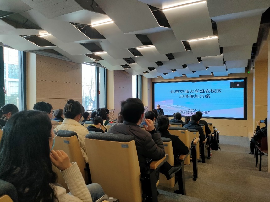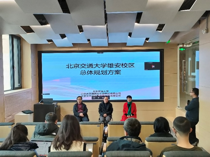 方案介绍过后,郑方教授、佘高红副经理、蒙晓英教授与在场师生充分交流,和老师、同学们分享心得,共同为服务新校区规划建设努力。佘高红回顾了多年以来公司寻求新校区的发展历程,提出要特别珍惜建设雄安新校区的宝贵机遇。蒙小英介绍了雄安新校区的景观规划系统。在座的老师和同学们也分别从校园规划的绿化、防灾、交通、校城融通等方面提出问题和专业建议。