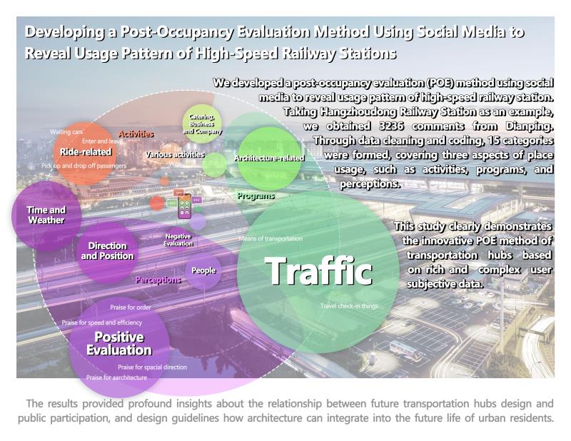 本研究以更高的复杂性和准确性提供了对高铁站点使用的理解,详细分析了高铁站的客流、空间功能、候车行为、商业类型等建筑环境相关问题。该研究创新地将大数据的应用扩展到交通建筑领域,建立了一种创新的高铁车站评估方法。此方法也可用于其他交通建筑类型,如机场、公交车站等,研究结论可为建筑师、交通工程师、室内设计师和管理人员等制定设计和改造策略,体现了威廉希尔体育在交通建筑领域的研究优势。
