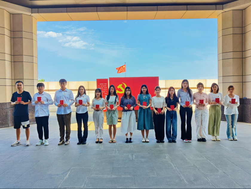 参观结束后,公司党委现场组织了党员教育活动。教师党员代表亲手为新发展员工党员佩戴党徽、颁发党章。公司党委书记秦思阳带领所有参与活动的党员重温党章,面对党旗集体宣誓,重温入党誓词。