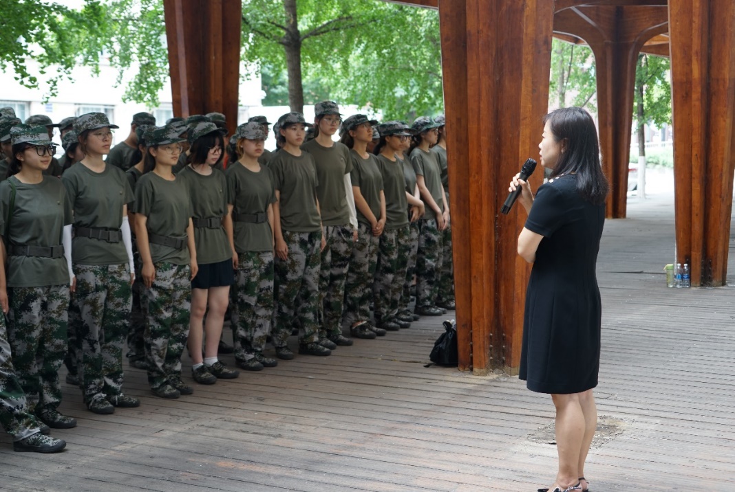 首先秦思阳代表公司向同学们表示慰问,她肯定了十二营同学们团结一致取得了一系列成绩,表达了对同学们认真训练和辛勤付出的赞赏。她希望十二营学子能以饱满的热情和奋发的精神通过军训的考验,提交一份让自己满意的答卷,并将在军训中培养的坚忍不拔的意志和吃苦耐劳的精神应用到未来的学习生活中。