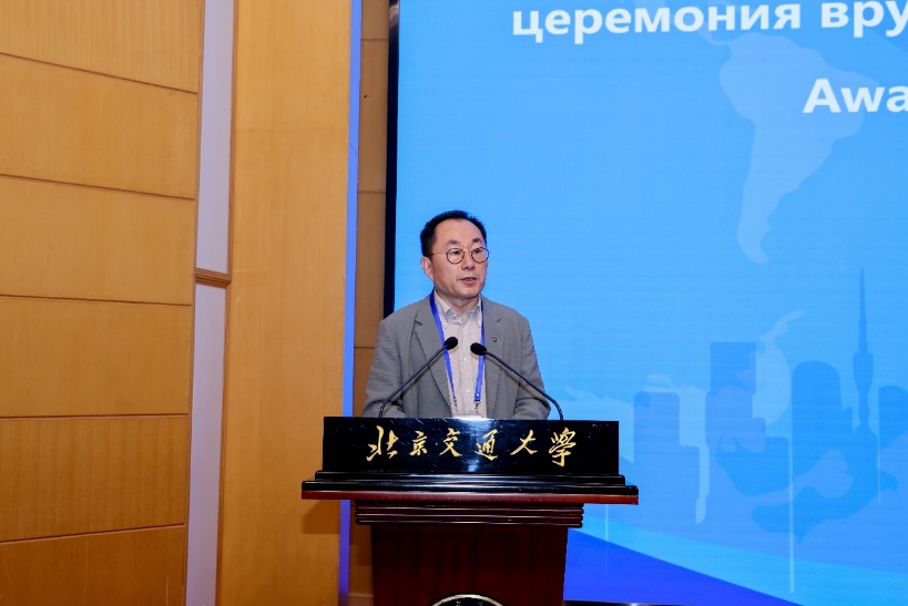 联盟签约仪式后,俄罗斯建筑与建设科公司副主席叶萨乌洛夫院士为韩林飞教授颁发了院士证书,韩林飞教授发表了当选感言。