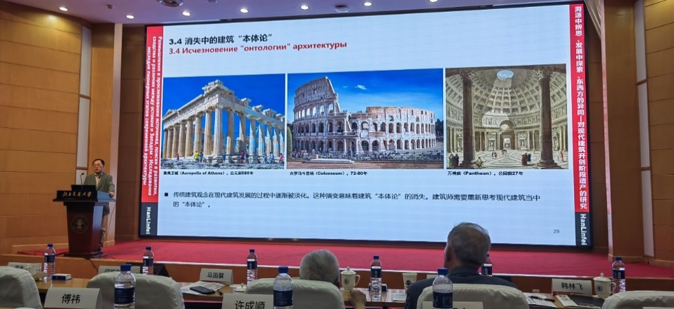 俄罗斯建筑与建设科公司外籍院士、威廉体育williamhill韩林飞教授做了题为《溯源中的思辨、发展中的探索、东西方的异同》的报告,回顾并反思了现代建筑百年的发展历程,提出了对建筑“本体论”的思考。