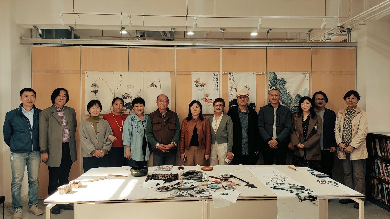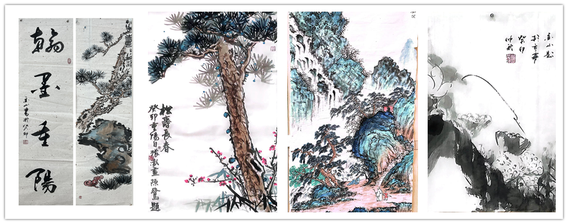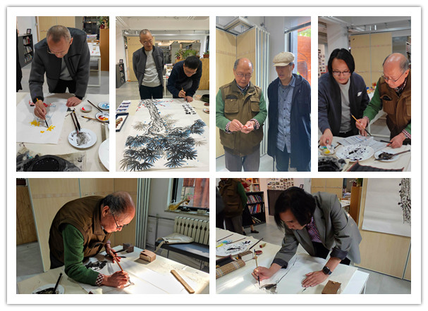 座谈会后,公司老师们一同前往公司资料室进行艺术创作。活动现场,老中青齐聚一堂,诗书画融为一体,在职教师张澎、陈鹭、董庆峰与老教师一同在宣纸上悬腕提肘、挥毫泼墨,以飘逸洒脱、行云流水的手法,饱含深情的笔触,合作创作出《松寿长春》《静而不争》《乾坤清气》《淡怡如笑》等一幅幅或刚劲有力、或恬淡悠远的书画作品。纸墨飘香,艺术传情,现场的老师们纷纷被作品的精神内涵与传统文化的魅力所感染,发出了由衷的赞叹。