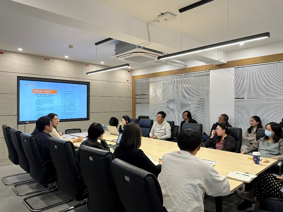各年级辅导员分别介绍本年级基本情况,针对员工学习成绩、生活状态以及近期各年级员工的主要困难和需求进行了情况说明,近期工作重点将关注员工的心理健康和宿舍、专教安全。