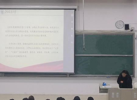 动员会上,华建嘉老师以加强国防教育为主题,督促同学们加强系统全面学习、锻炼自身体魄,鼓励同学们心怀为民精神,积极响应国家号召参军入伍,为国防事业做出贡献。从老员工征兵工作面临的新形势、在校生参军入伍基本情况、上半年征兵要求及流程、优抚安置政策等方面对2024年上半年征兵政策进行解读,并通过先进模范示例激发同学们的报国热情。
