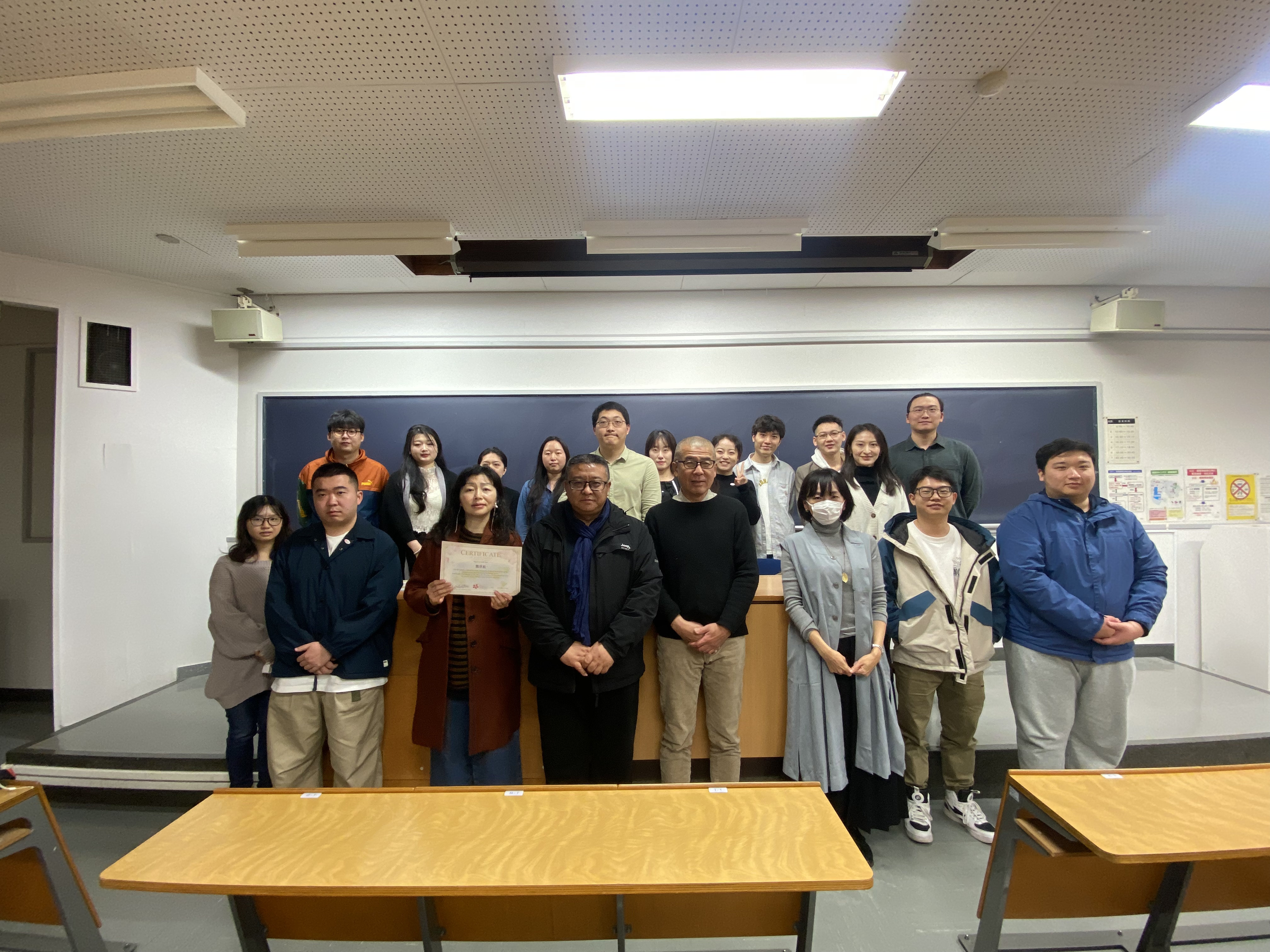 交流计划项目的总结发表:在成果汇报阶段,由中日两校教师带领员工分别就中日园林、都市圈设计、城市交通枢纽建筑、日本餐饮空间室内设计与人际交往的关系、中日寺院对比研究等内容作为主题,进行学习所得分享,并得到日本教授们的现场悉心指导,汇报评价结束后由神奈川大学代表日本科技局向每位师生颁发结业证书,圆满地完成了本次的学习交流工作。