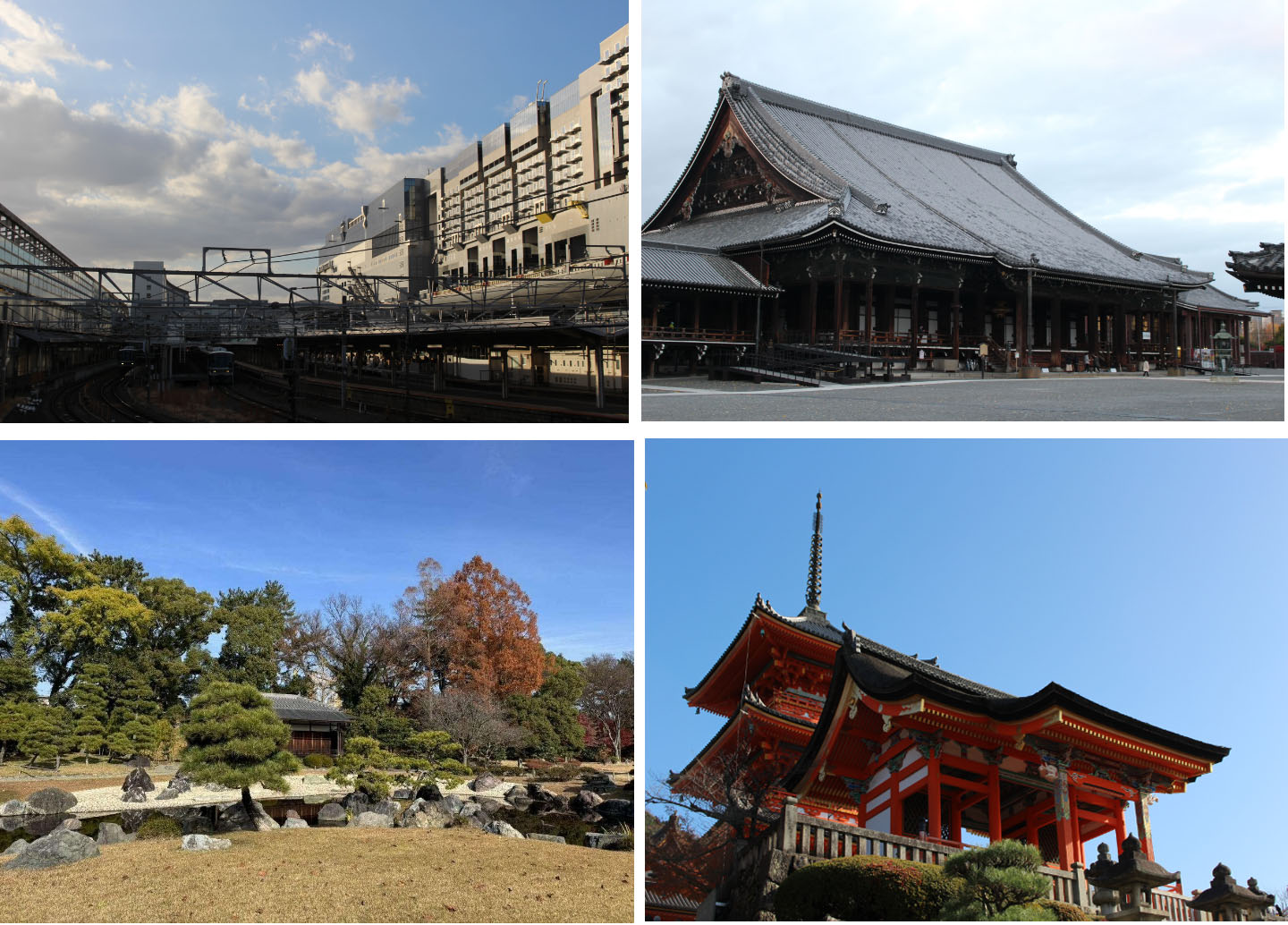 学习考察京都市古建筑:交流期间,老师们还带领同学们实地学习考察了京都车站,深入研究站点环境及建筑设计。参观东本愿寺、西本愿寺、清水寺,感受寺院建筑的独特之美。参观日本皇家离宫桂离宫、京都天皇御所、江户幕府将军居所二条城等,学习日本皇家、贵族的园林建筑设计。实地参观龙安寺,领略侘寂风格庭院的设计之美。由于受到各自地理条件和历史文化的影响,中国园林与日本园林形成了迥异的风格:在结构布局、山水设置与思想意境方面均各有千秋。从美学上角度出发,中国园林采用更加纯粹的艺术把握园林及世界的方式,展现园林中欢喜与悠然的审美感受,追求天人合一;而日本则更偏向于采用宗教把握园林及世界的方式展现园林中的审美意境与感受感受:追求人佛合一。