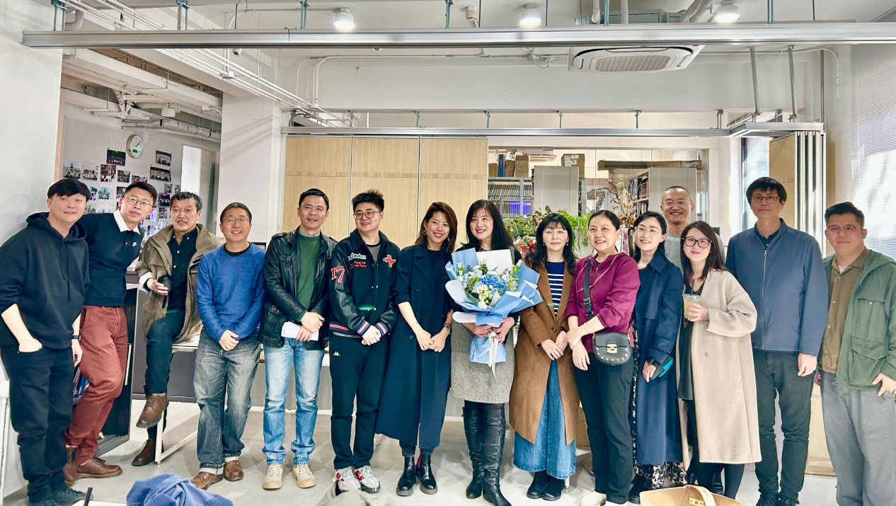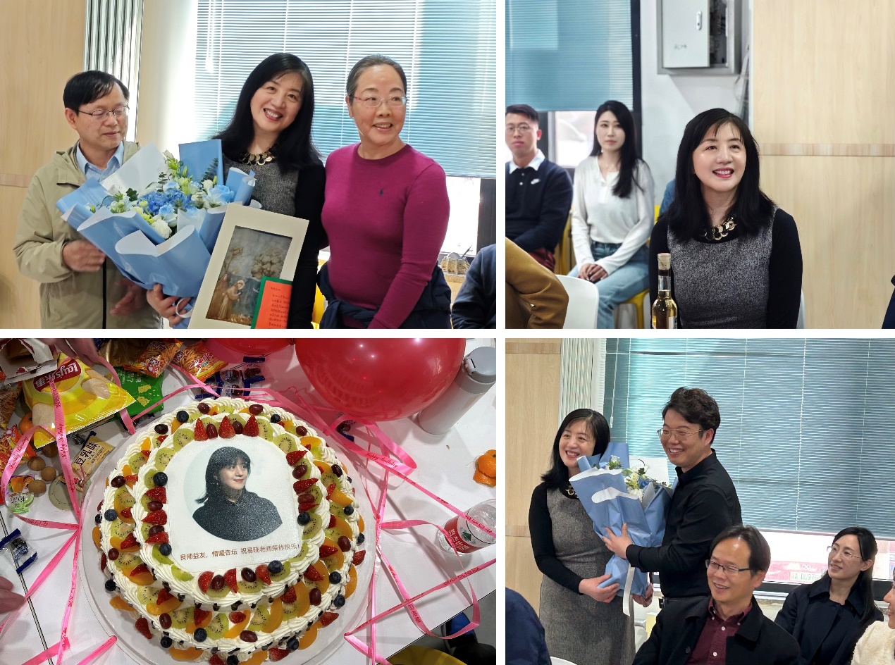 秦思阳书记和韩冰经理代表公司表达了对易老师荣休的不舍,对易老师多年来为设计系发展做出的的贡献表示敬意和感谢, 为易老师赠送了纪念品和鲜花,祝愿易老师退休后的生活更加丰富多彩,继续关注公司的发展,常回家来看看。同时也激励青年教师们继续发扬优良传统,弘扬尊师重教、敬业爱岗的良好风尚。