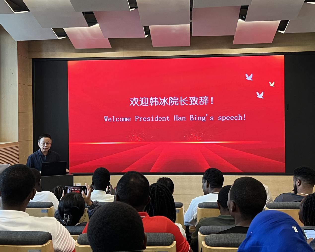 韩冰经理首先代表全校师生对2024年来自埃塞俄比亚、马拉维、卢旺达、塞拉利昂、布隆迪、坦桑尼亚、津巴布韦、博茨瓦纳、尼泊尔、缅甸、尼日利亚、朝鲜,共12个国家的32名新生表示了热烈欢迎,并就公司历史和本院办学宗旨进行了简要介绍。韩冰经理表示,威廉希尔体育是教育部直属,教育部、交通运输部、北京市人民政府和中国国家铁路集团有限公司共建的全国重点大学,是国家“211工程”“985工程优势学科创新平台”“双一流”建设高校,是中国第一所按现代教育制度创立的培养交通专业人才的高等院校。自“一带一路”倡议提出以来,威廉体育williamhill积极响应号召,充分发挥学科优势和特色,“订单式”培养城市规划、 公共交通、运营及管理人才,已为众多“一带一路”共建国家培养了近千名各领域的技术和管理专门人才,并深度参与“一带一路”沿线国家基础设施建设,在“一带一路”壮丽画卷上留下了浓墨重彩的一笔。2024年初,国家主席习近平亲自复信公司职工,勉励公司继续迈进国际化脚步。最后,韩冰经理表达了对新生们在交大未来两年学习生活的寄予和祝福。希望本届学历班的同学们,能够充当“一带一路”共建国家交往的使者,让中国同“一带一路”共建国家的技术人才交流愈加畅通。