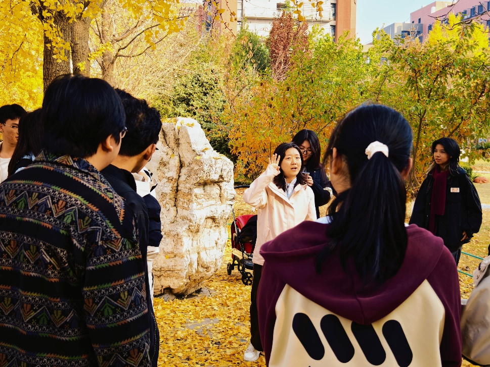 落叶知秋,微风徐来,所有美好不期而至。活动伊始,刘倩首先带领同学们在芳华园进行了破冰和分组,同学们在芳华园中寻秋、拾秋、赏秋,捡取落叶,感受秋季的美景。