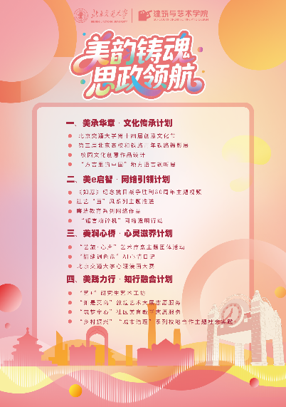 本届创意文化节以“绘时代、创未来”为主题,共设计了五个展区,分别是“铭赤心·烽火淬炼”“汲古韵·文化交响”“铸路魂·铁路情长”“心晴朗·万象共生”“绘蓝图·新程启航” 。在“交大未来”的起点上,传承创意文化节初心,弘扬中华优秀传统文化、交通文化,以交通为特色融合学科发展,赋能可持续创新生态。