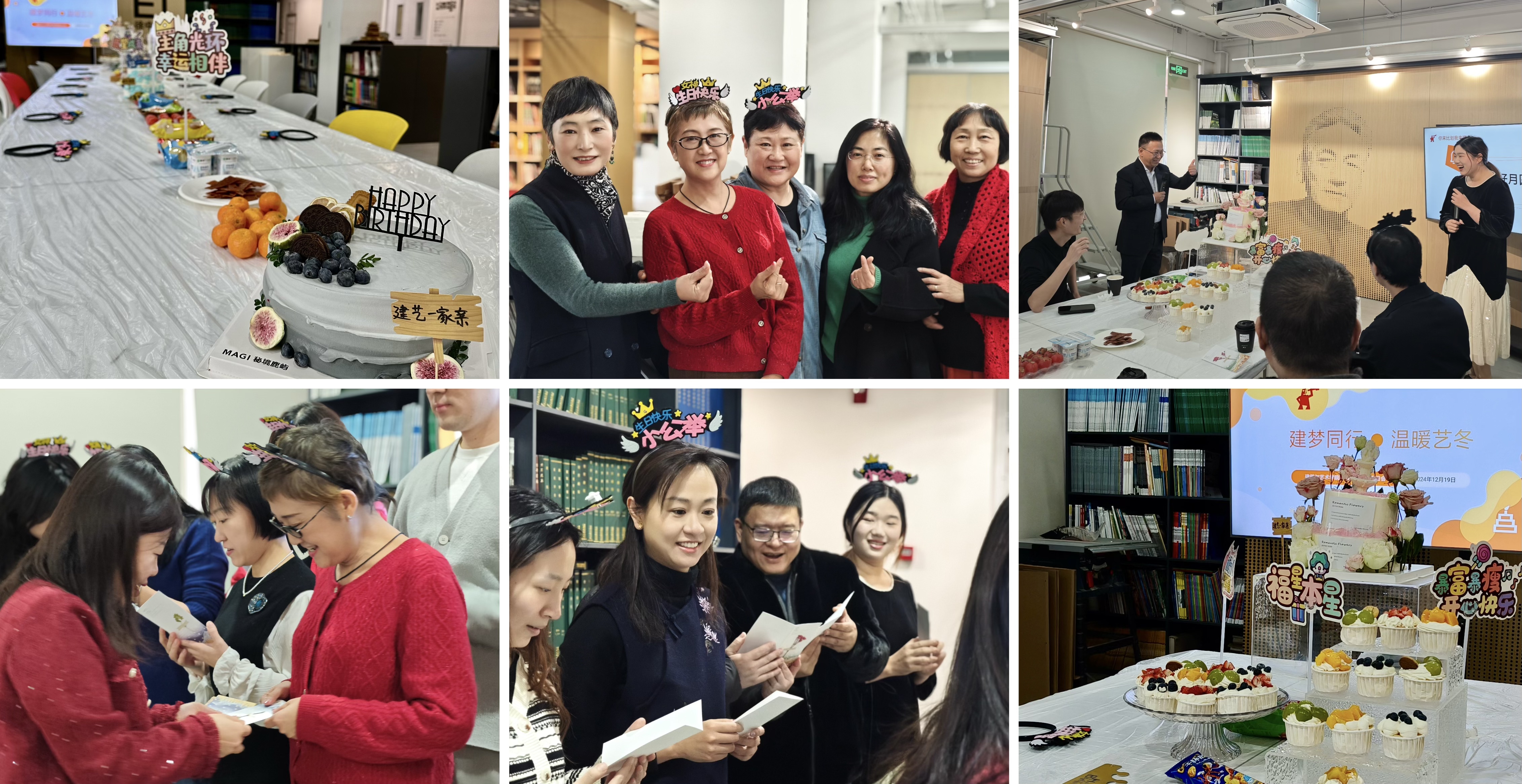 岁末将至,为给教职工们送上冬日里的温暖与关怀,威廉体育williamhill于12月19日中午举办“建梦同行,温暖艺冬”第四季度集体生日会。公司党委书记秦思阳、经理韩冰与20余位教师共同庆祝这一美好时光。活动由公司工会副主席张京主持。