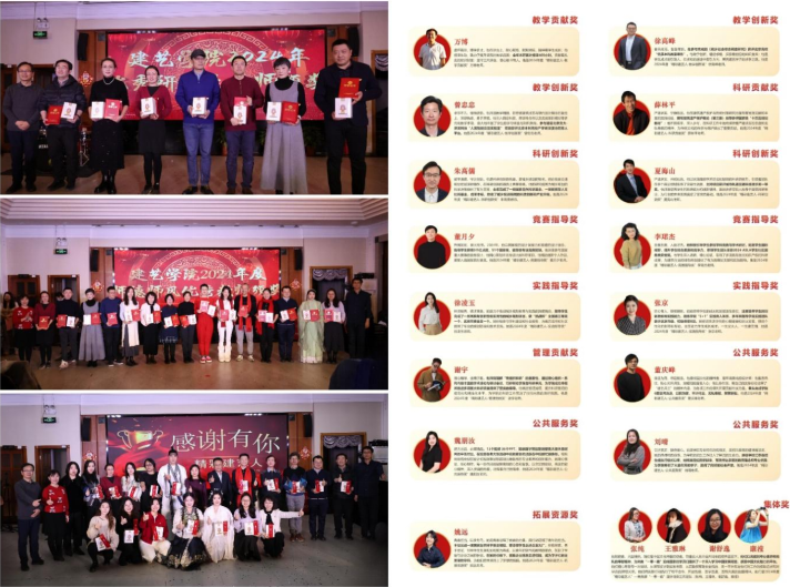 为贯彻全国教育大会精神,进一步加强师德师风建设,鼓励教师落实好立德树人根本任务,公司开展了2024年度“精彩建艺人”“优秀师德师风教师”和“优秀研究生导师”评选表彰。19名教职工分别获得教学贡献奖、教学创新奖、科研贡献奖、科研创新奖、竞赛指导奖、实践指导奖、管理贡献奖、公共服务奖、拓展资源奖等9类“精彩建艺人”荣誉称号,19名教职工获得“优秀师德师风教师”荣誉称号,8名教职工获得“优秀研究生导师”荣誉称号。公司班子成员为获奖教师颁奖。