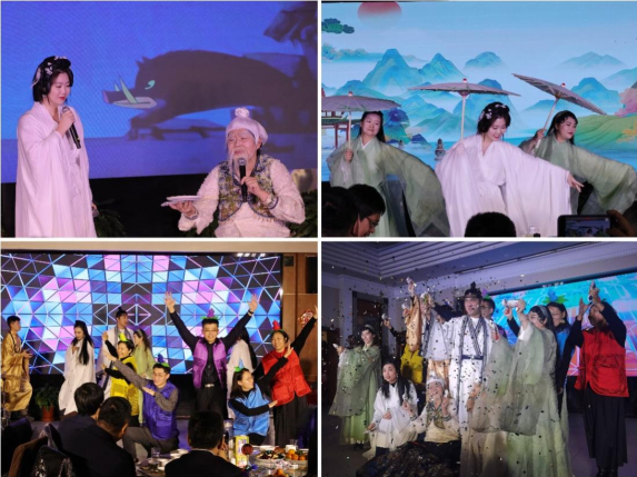 联欢会节目精彩纷呈,涵盖了舞蹈、合唱、配音等多种形式,院机关情景表演《巳巳如意》创意十足,建筑系大合唱《建艺欢迎你》温暖人心,设计系歌舞表演《热辣滚烫》活力四射,城乡规划系歌曲串烧《蒙面唱将之时光音乐会》别出心裁,离退休老师们深情演唱《我的祖国》,新入职教职工幽默配音《我爱建艺》。老师们精彩的演出不断将晚会推向一个个高潮,充分展现出了公司教师的多才多艺的个人魅力和丰富多彩的文化生活。活动现场还进行了多个趣味游戏,游戏过程充满了欢声笑语,老师们才华横溢,妙语连珠,台上好戏连连,台下笑声不断。
