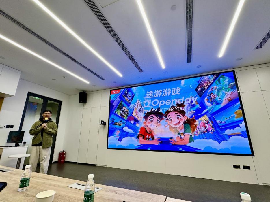 当日下午,在公司招聘负责人许小阁,校招负责人吴凡的引导下,师生一行有序走进途游公司,开启了一场游戏行业的探索之旅。吴凡详细讲述了途游公司的创立背景、发展历程,并深入解读了公司的企业文化和核心价值观,充分展现了途游公司在业界的竞争力和发展潜力。员工们置身于宽敞舒适的办公环境,感受着忙碌而有序的工作氛围,以及充满创意的设计空间,不禁对未来职场生活充满了憧憬。