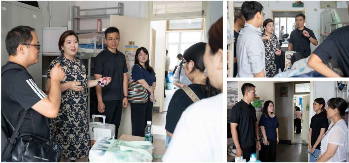 24日上午,公司学工办主任张京、新生辅导员李昊霖、辅导员孙冬爱等一同走访新生宿舍,为刚刚安顿好的学子送上公司的关怀与祝福。张京与新生及家长亲切交流,细致了解员工的到校时间、入学体验和住宿情况,就专业学习与生涯规划等话题与大家展开探讨。同学们纷纷表示将尽快调整状态,牢记师长期许,积极迎接大学新生活。