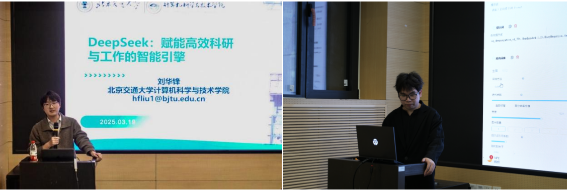 320日,智启未来迎AI,慧融时代共潮生——如何拥抱AI时代智育主题理论培训在建艺楼一层报告厅展开。计算机公司讲师刘华锋、数字媒体艺术专业本科生叶书华,先后围绕DeepSeek大语言模型应用与AI艺术创作,为80余名师生描绘人机协同的未来图景。在人工智能浪潮正盛的当下,本次讲座提升了员工骨干的综合素质与专业能力,促进员工对人工智能及其应用的理解,引导员工在技术浪潮中找准定位,以理性态度拥抱变革,为成为适应时代需求的复合型人才奠定基础。